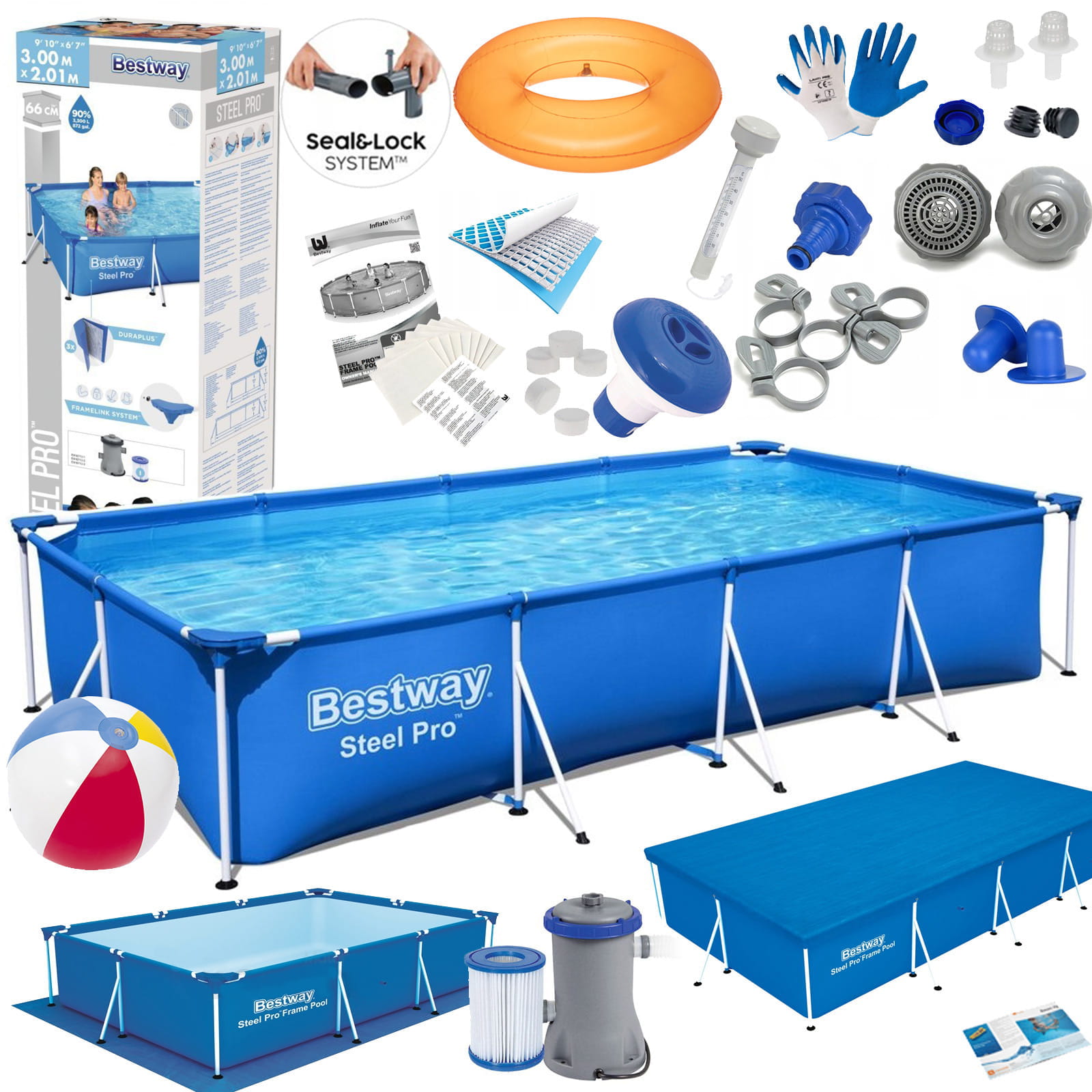 22w1 Basen Stelażowy Steel Pro 300x201x66cm ZESTAW BESTWAY 56411