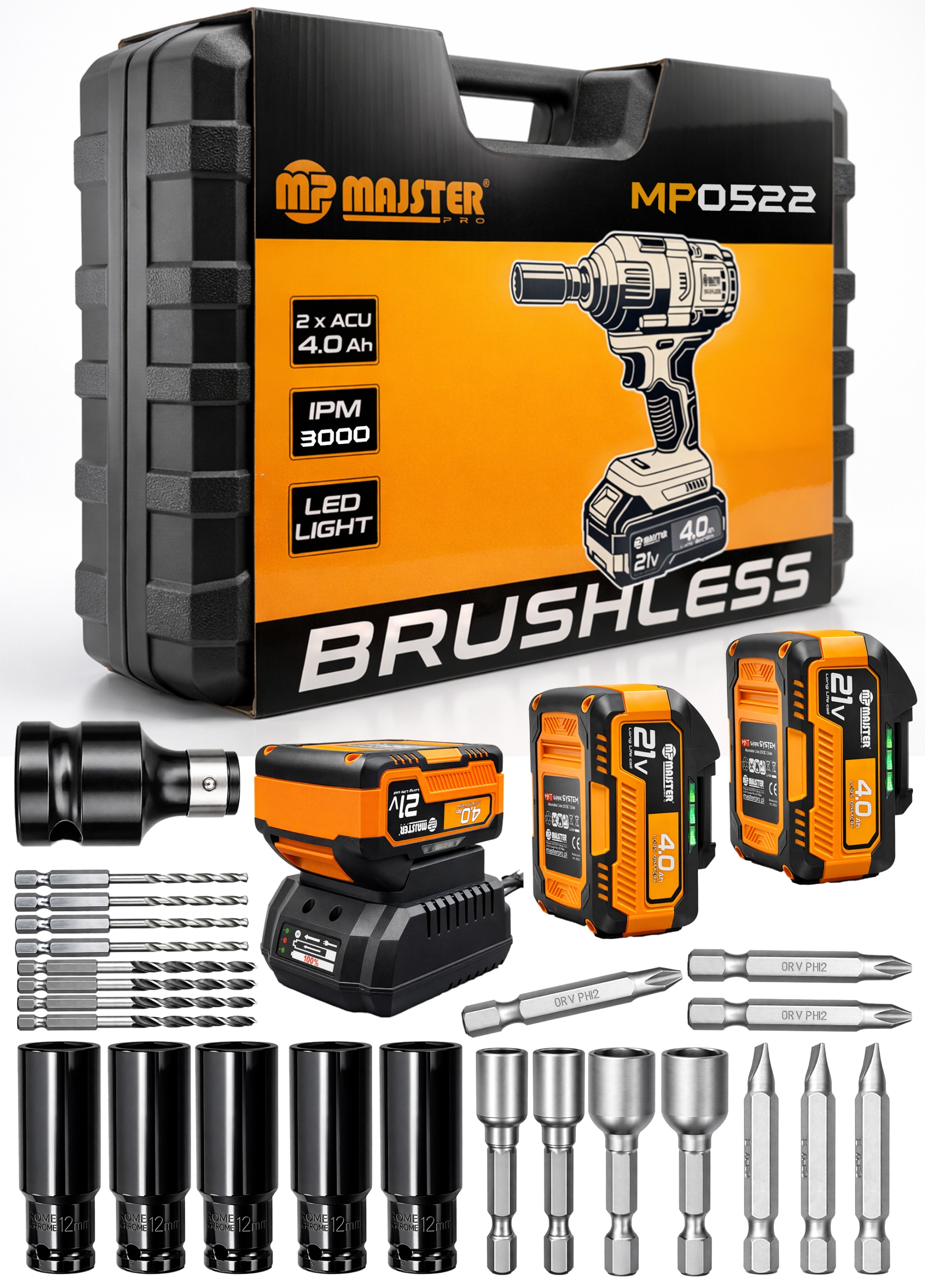 W zestawie znajduje się wydajna szybka ładowarka, zaprojektowana specjalnie do dużych akumulatorów klucza udarowego, zapewniająca krótszy czas ładowania i maksymalną gotowość do pracy.