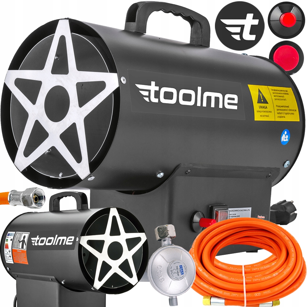 Sprzedawana przez nas nagrzewnica posiada w zestawie wszystkie potrzebne do połączenia złączki oraz reduktor, wystarczy podpiąć do butli gazowej propan/butan oraz zasilania 230V i natychmiast ogrzewać pomieszczenie .