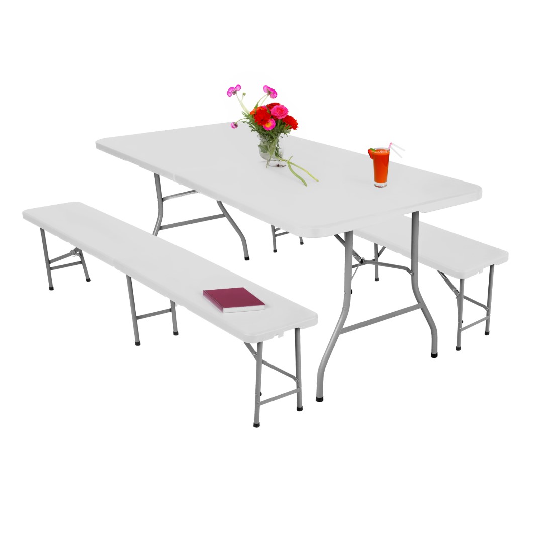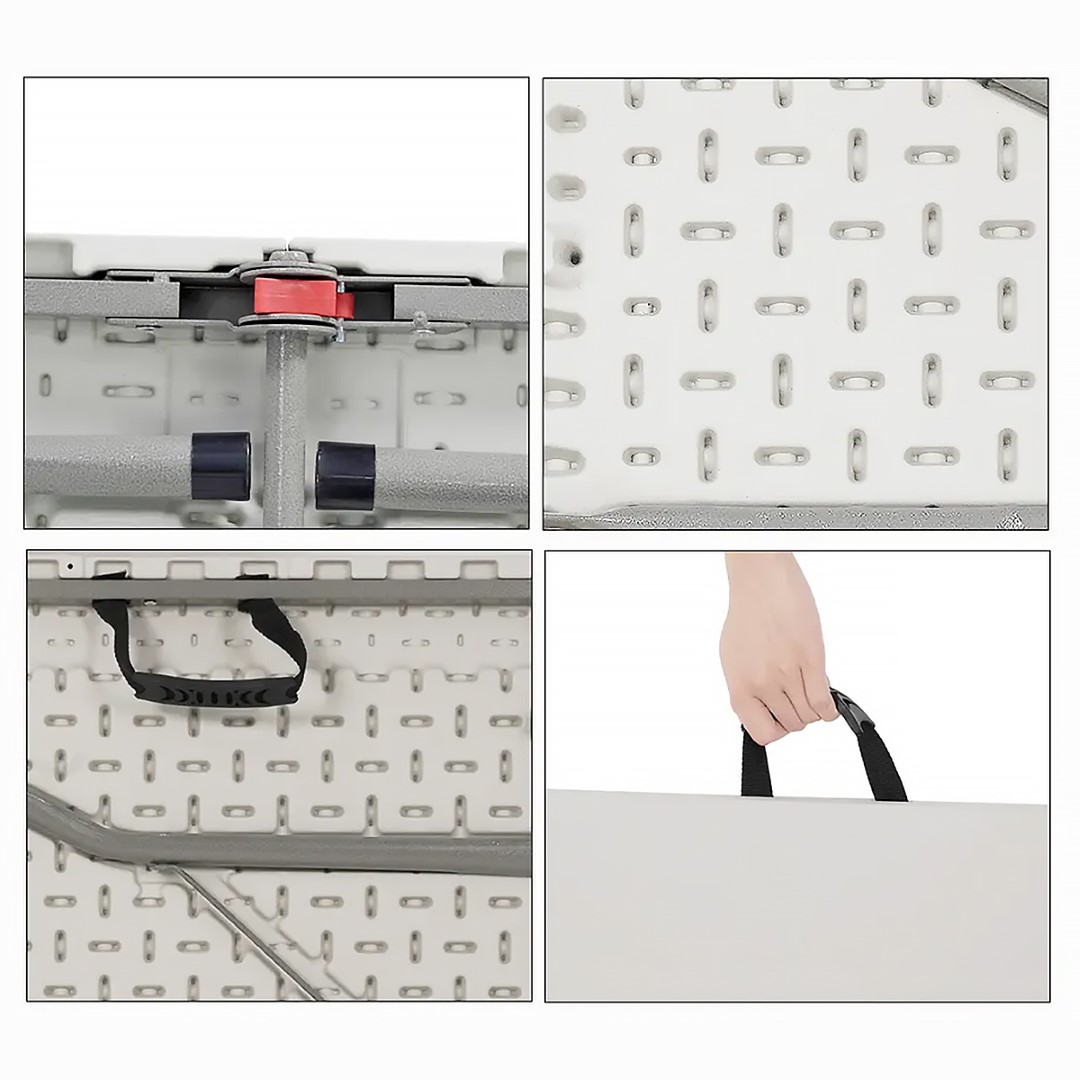 Stół ten jest lekki, łatwy w rozkładaniu i zajmujący minimalną przestrzeń po jego złożeniu. Jednocześnie dzięki stalowej konstrukcji malowanej proszkowo oraz solidnemu, grubemu blatowi z tworzywa HDPE jest on wytrzymały, stabilny i odporny na trudne warunki atmosferyczne.
