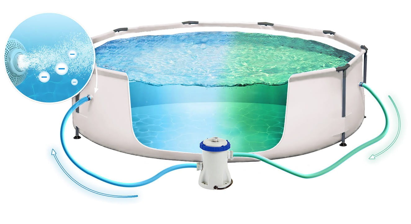 Pompa jest niezbędnym elementem gwarantującym skuteczne czyszczenie wody w basenie. Załączona do zestawu pompa wymienia całą wodę w basenie co około 5 godzin. Papierowy filtr separuje wszelkie nieczystości. Wydajność pompy to aż 3028 litrów/godzinę.